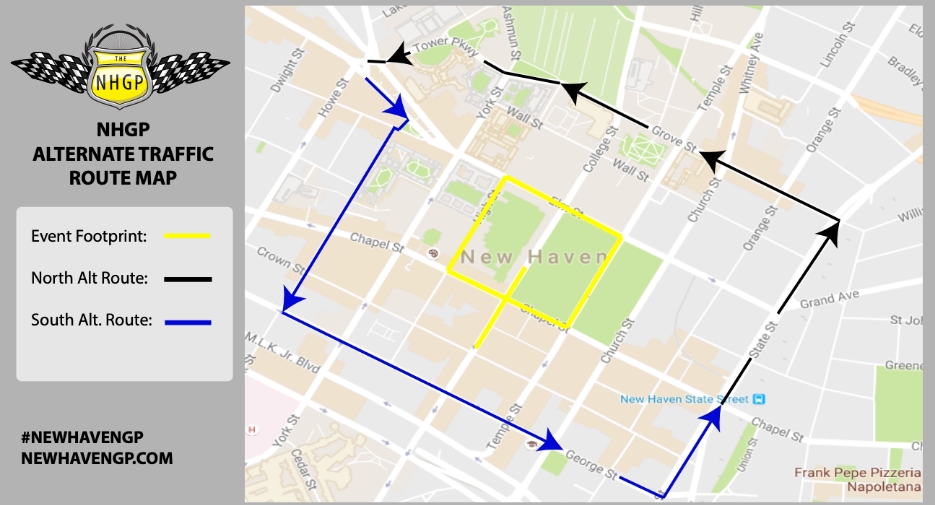 Take note, the following roads will be closed during the New Haven GP: alt route map 2017